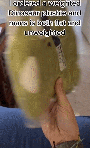 TikTok 上,關(guān)鍵詞 “Weighted anxiety dino” 的瀏覽量高達(dá) 3.76億次,且擁有相當(dāng)多的追隨者。很多用戶發(fā)布視頻都大力贊揚(yáng)這款毛絨玩具,稱它有助于她在晚上入睡,并能使她們在焦慮的時候平靜下來。