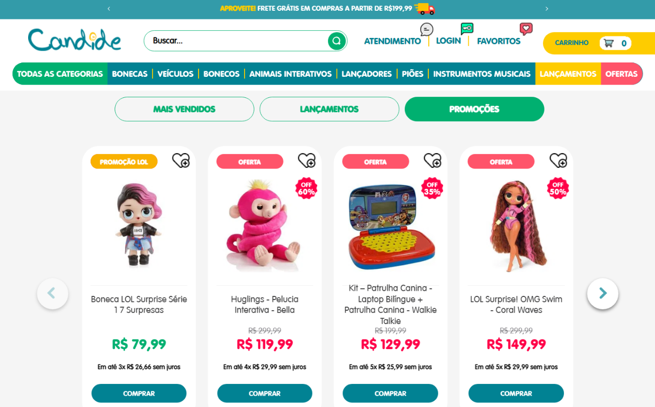 巴西玩具市場(chǎng)占有率排名第三的Candide網(wǎng)站首頁,所售產(chǎn)品皆是歐美市場(chǎng)上的熟面孔