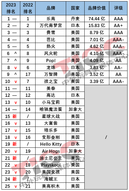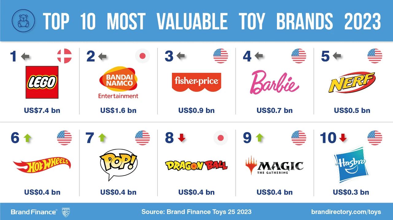 近日,國(guó)際獨(dú)立品牌估值咨詢(xún)公司Brand Finance公布了2023年版的全球玩具品牌排行榜(TOYS 25 2023),一起來(lái)看看今年有什么新變化吧!