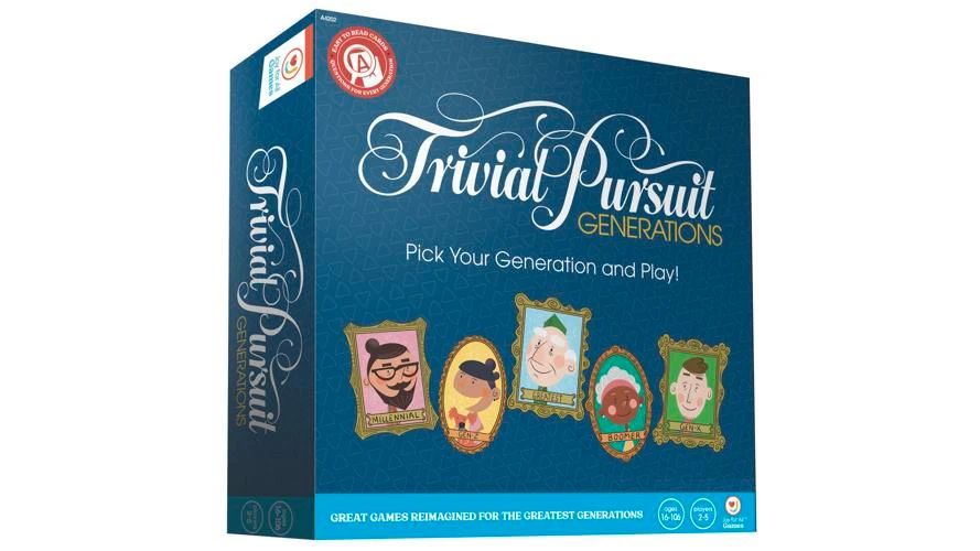 經(jīng)典答題闖關(guān)類桌游全民猜謎大挑戰(zhàn)全新版(Trivial Pursuit Generations edition/售價(jià)45美元),雖然問題依然分為地理、娛樂、歷史、藝術(shù)與文學(xué)、科學(xué)與自然以及體育與休閑六個(gè)傳統(tǒng)類別,但廠家緊跟時(shí)代發(fā)展重新設(shè)計(jì)了1,500個(gè)新問題,并按不同的世代相關(guān)性進(jìn)行了細(xì)分,涵蓋了從1900年代以來出生的多個(gè)不同世代。此外,套裝中還提供了一副額外的空白卡片,玩家可以在上面添加個(gè)人化的問答題目。