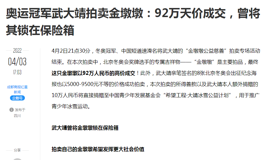 與此同時,一款金色“冰墩墩”也吸引了無數(shù)眼球,它是限量版“冰墩墩”(泰華玩具(深圳)有限公司出品),相比普通版,限量版是用來典藏的,為獲獎運動員的專屬定制紀念品。